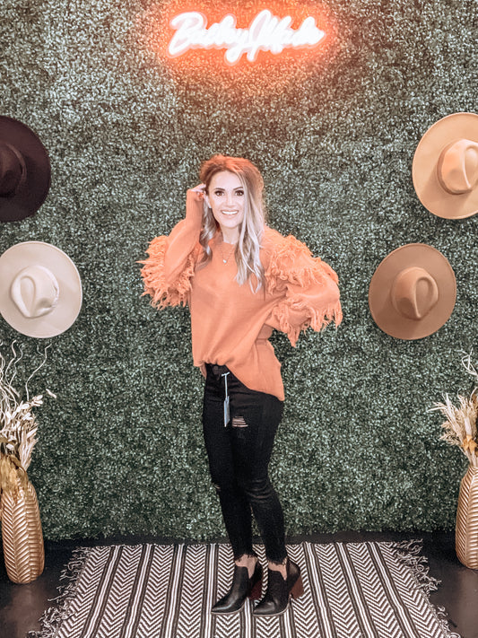 Camel Fringe Sleeves Sweater