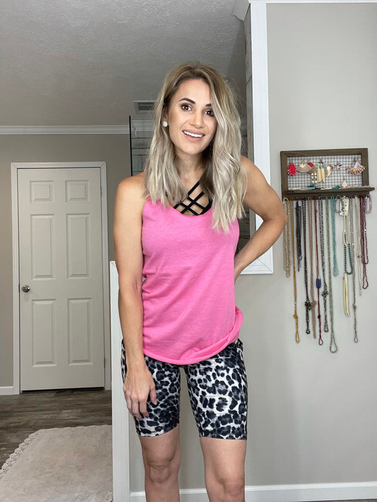 Black/Grey Cheetah Biker Shorts with Pockets (PS Available)