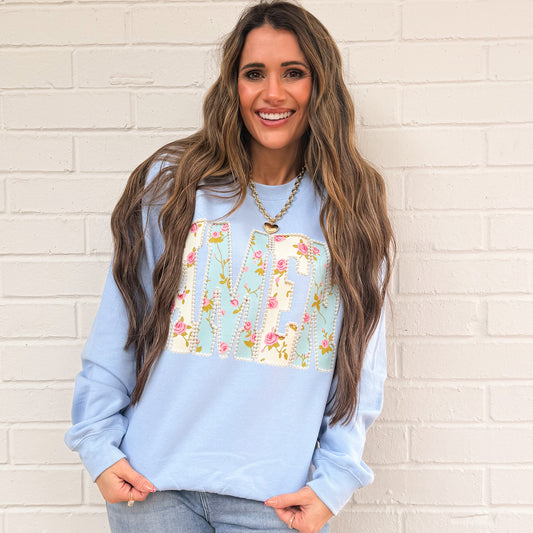 Amen Floral FAUX Pearl, Christian Spring, Vintage Faith Shirt , FAUX Patchwork Flower Lettering Tshirt (Website)