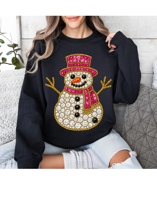 Faux Bejeweled Snowman, pink holidays, cute faux pearls, Holiday Sweatshirt