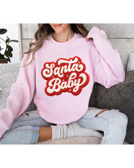 Faux Yarn Santa Baby, Christmas Chenille, Holiday Sweatshirt