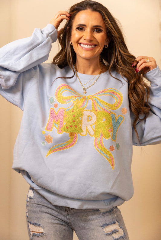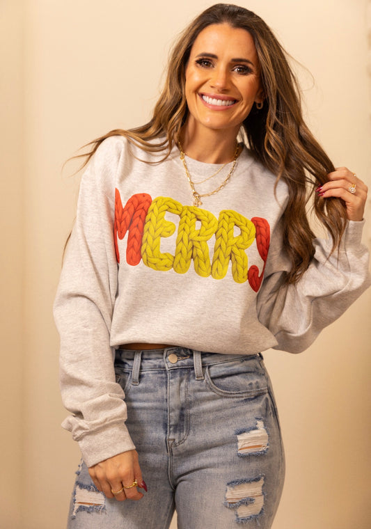 Christmas Faux Yarn Merry Holiday Sweatshirt