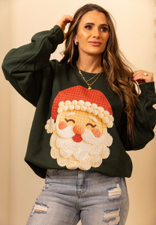 Faux Yarn, Retro Santa , Santa Hat, Holiday Sweatshirt