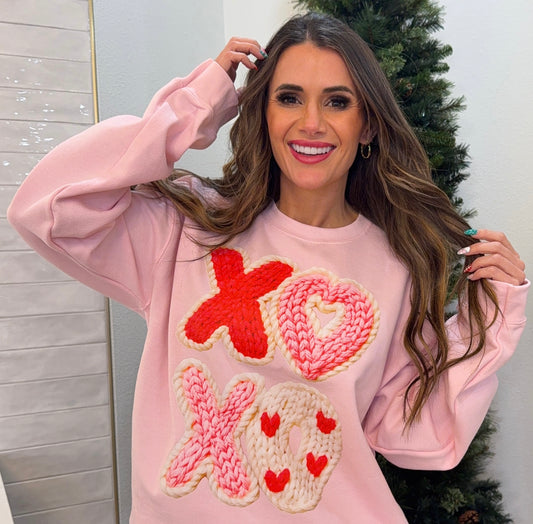 Faux Yarn XOXO Knit, Xoxo Yarn, Trendy Valentine, Vday Preppy, Valentine's Day Sweatshirt
