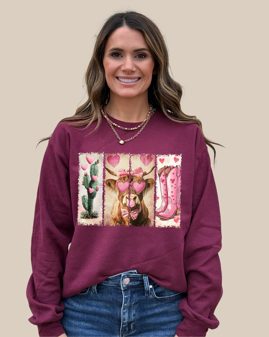 Valentines Cactus Highland Cow Sweatshirt