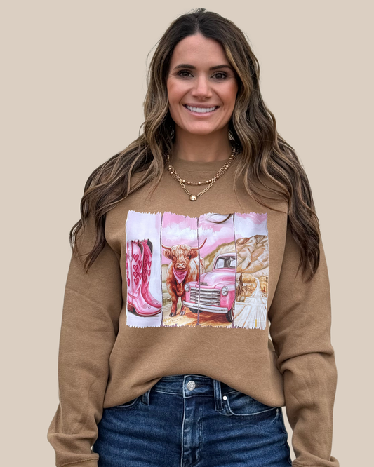 Bubble Gum Highland Cow Sweatshirt