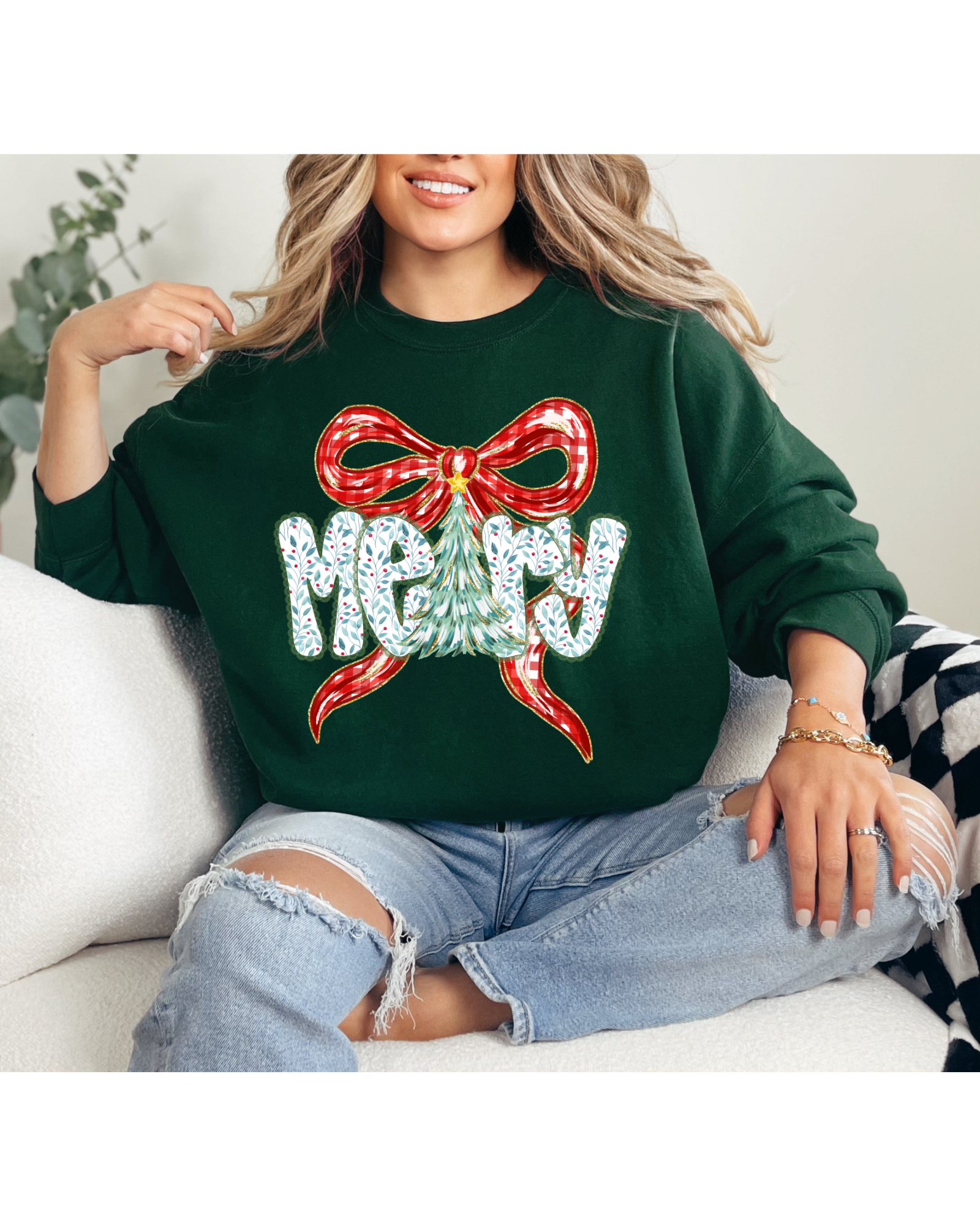 Red Bow Merry Gold Star Holiday Sweatshirt