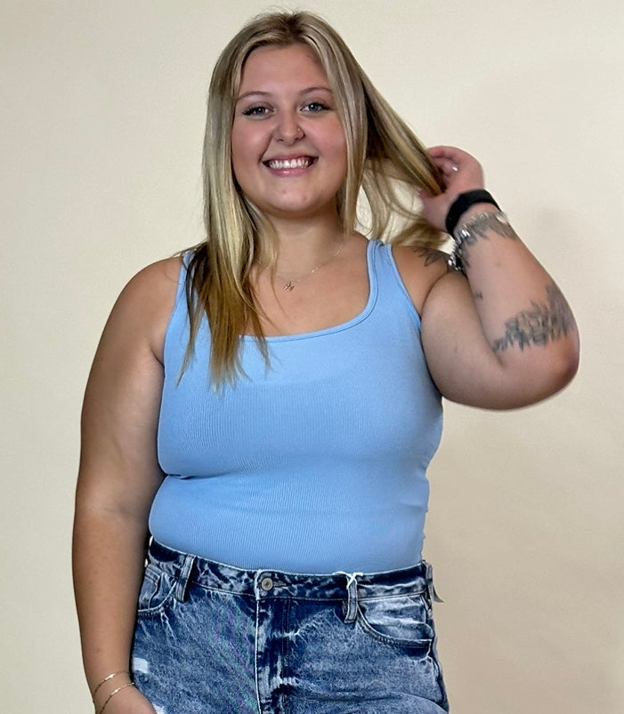Square neck bodysuit, ( no padding). Models all have tanks/sports bras under. Can wear with regular bra.