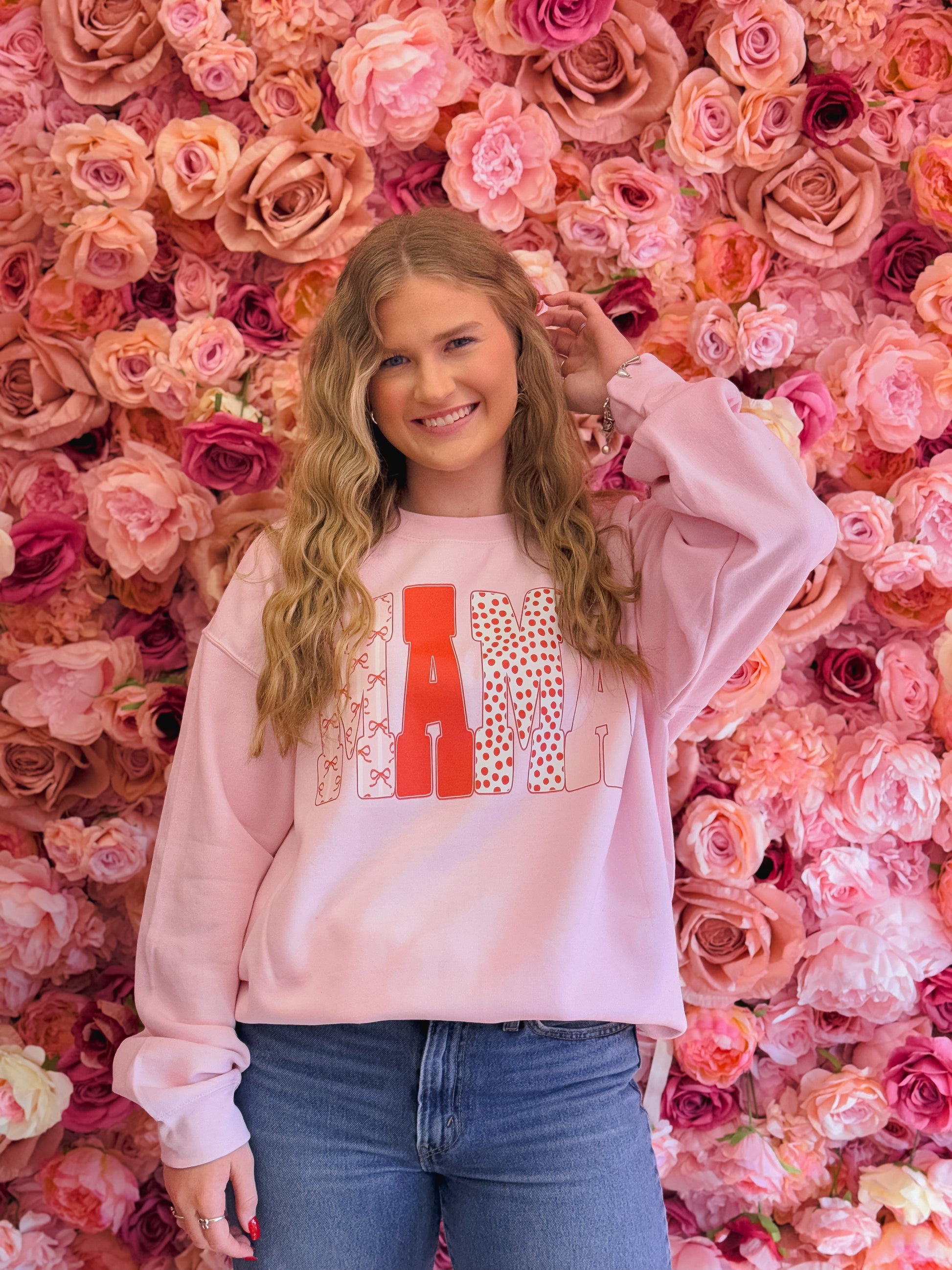 Valentines Mama, Trendy Mama, Preppy Multi Pattern Giant Print Mama, Cute Retro Mom Sweatshirt